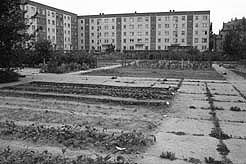 Leipzig, Plattenbau und Gemüseanbau 06/1990