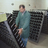 Der Kellermeister beim Flaschenrütteln.